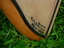 It will be super robust with the tulipwood rails (beautifully thicknessed to 3.2mm strips by Beech Bros of Exeter), birch ply deck, Kevlar carbon bottom. Weight is more than a PU or EPS conventional but it is still a spritely 8lbs and the added weight should give it loads more flow and quicker take offs.